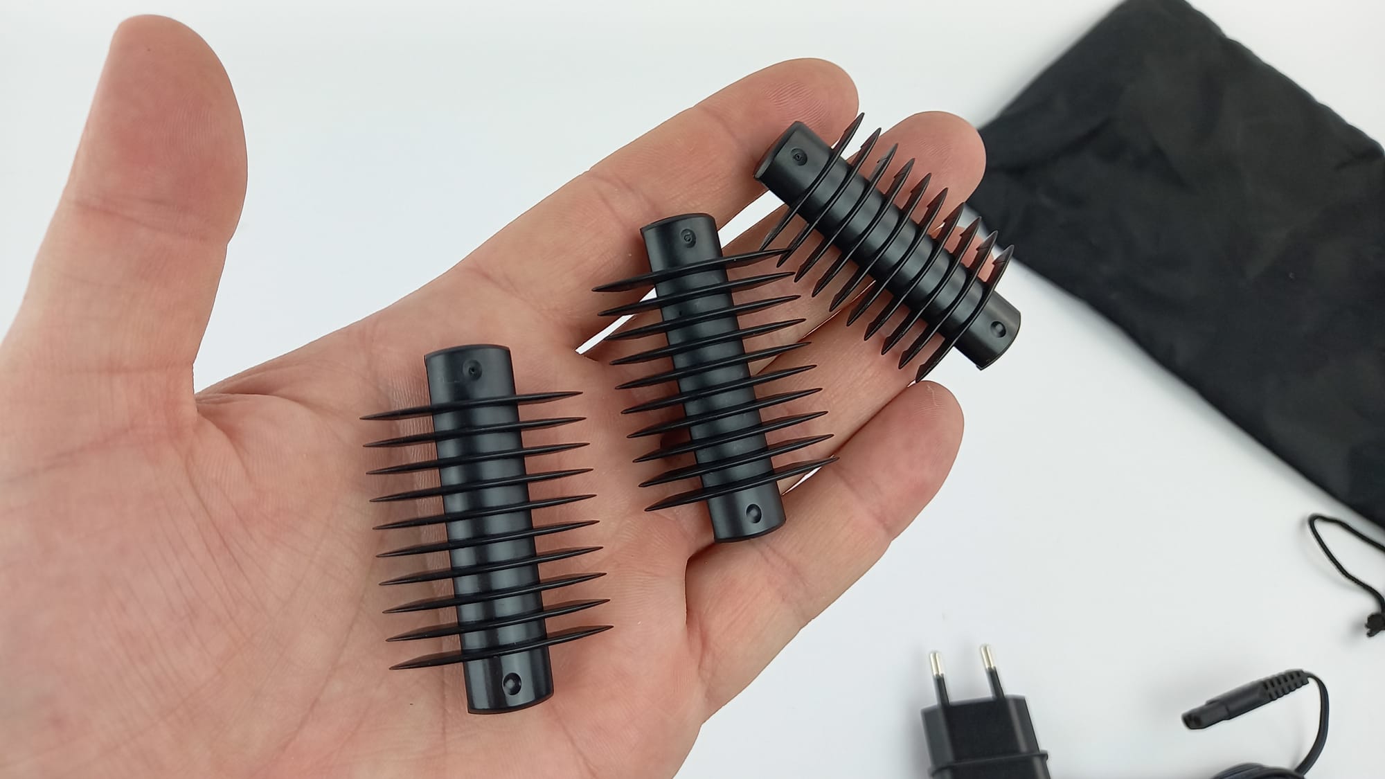 You get the shaver, 3 comb guards (3, 5, 7 mm), a simple pouch and of course the charger.