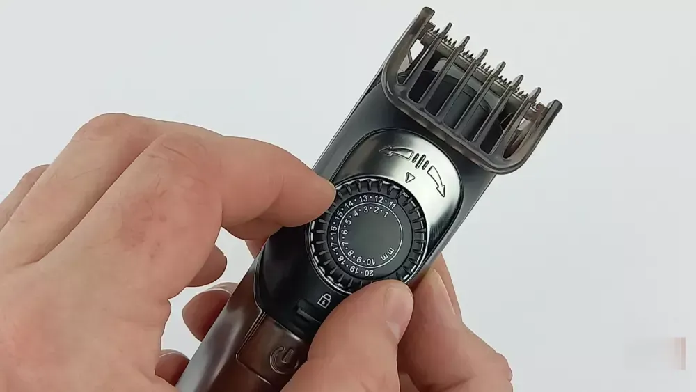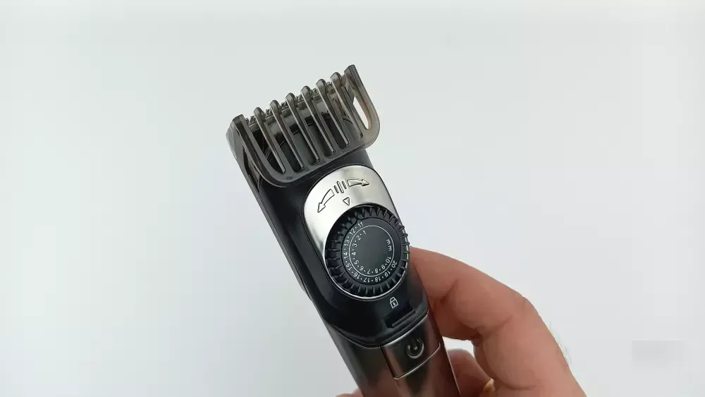 - Length settings dial. Although the dial wheel is technically working properly, its edges feel “sharp” on fingers. It also turns quite hard, meaning you have to use more force to turn it compared to for example Braun beard trimmers.
