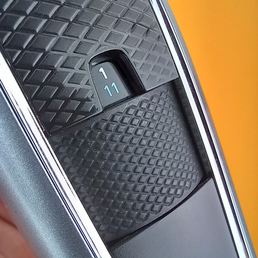 Here we have a similar dial covered with rubber. This makes choosing your preferred setting fast, precise and easy in general.