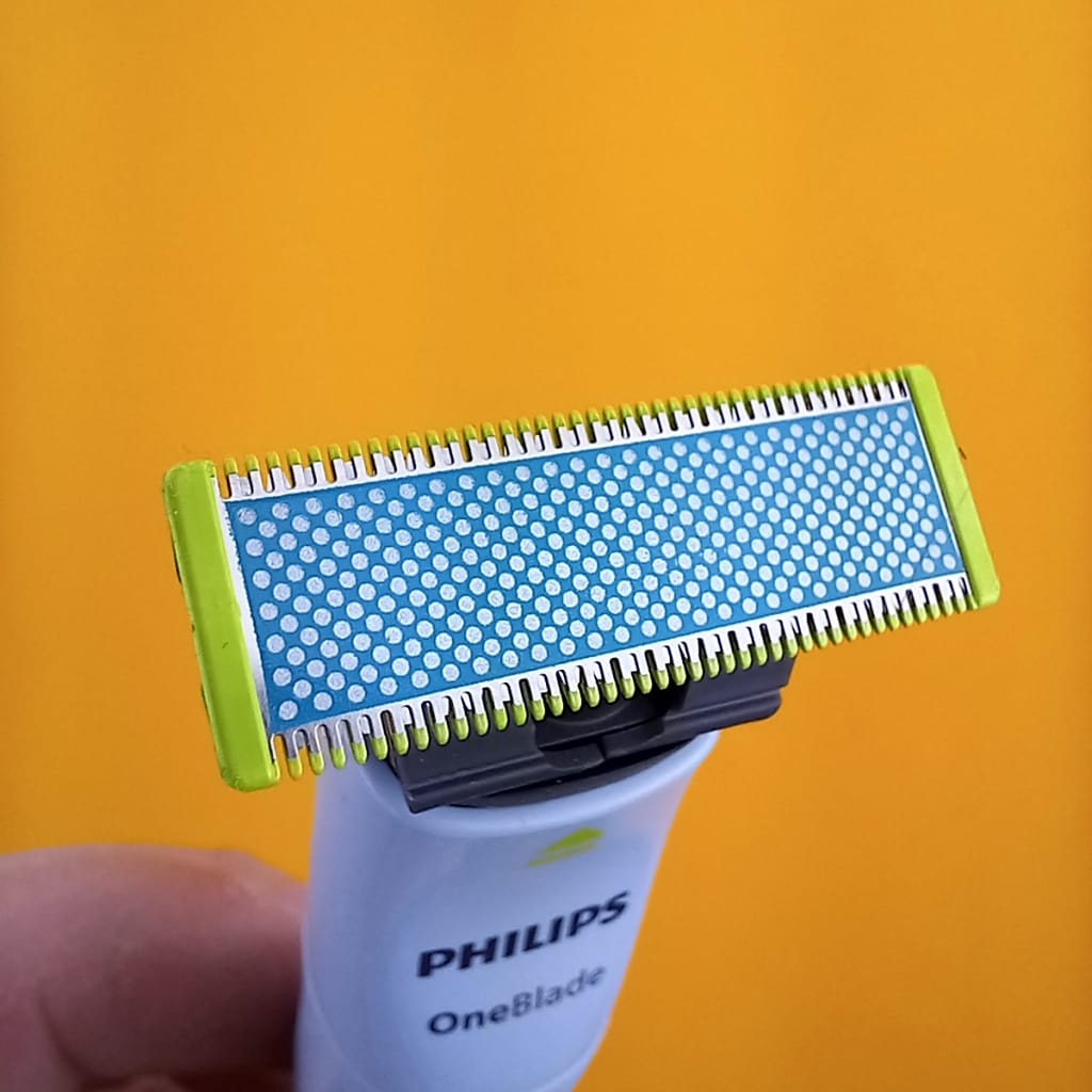 - The blade. Philips OneBlade First Shave QP1324/20 is equipped with a blade that is very similar to a standard OneBlade blade, but the main area (that touches your skin) is made even more “glidable” :) Well, I didn’t notice any difference and in my opinion First Shave and a standard OneBlade blade glides on the skin the same way.