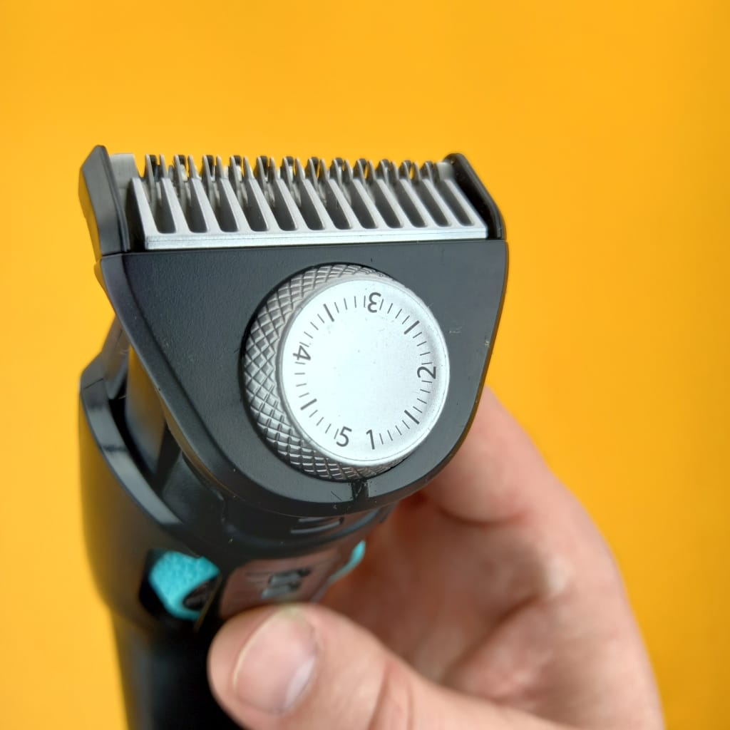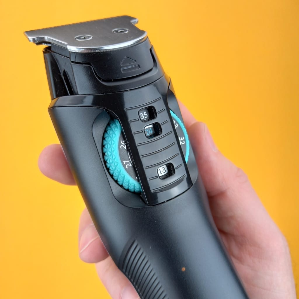 - The length setting system. Here we have a wheel dial but in my opinion it is a bit too much “hidden” in the body of the clipper. Meaning it is not easily accessible. Well, it is not something that would completely disqualify this model, but you have to get used to this solution.