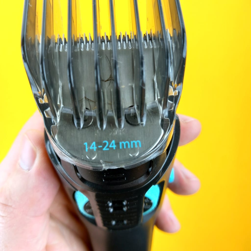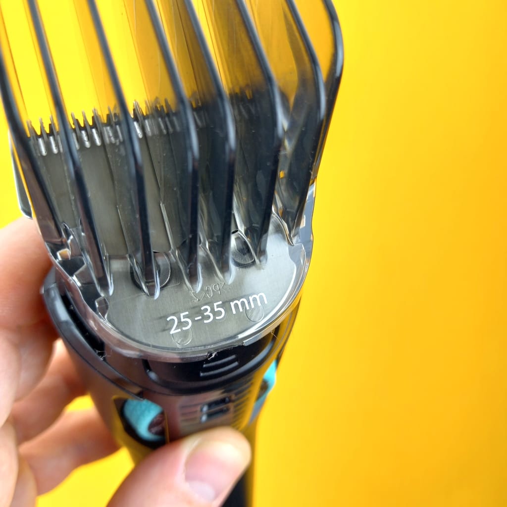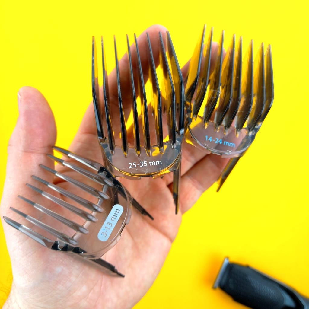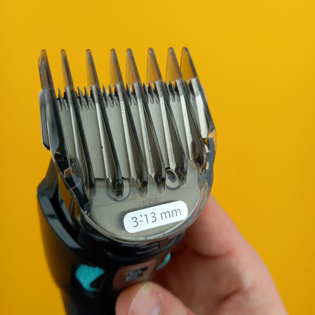 - The adjustable stubble comb. My impression about this attachment is like “flimsy”, it is not feeling quality. You actually don’t feel and hear the “clicks” between each length setting. Personally I don’t like it because I am not sure if my preferred length is properly set.